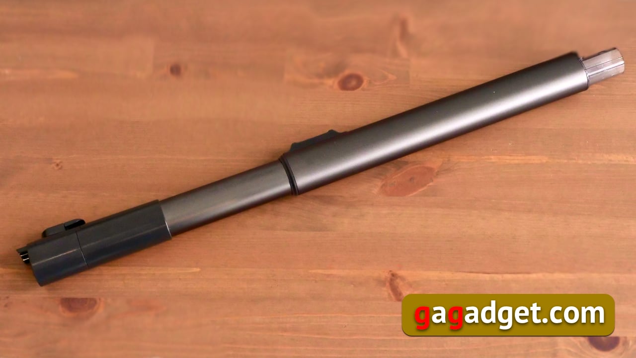 Et annet uunnværlig element i enhver støvsuger er teleskoprørforlengelsen. Den kan forlenges med opptil 14 cm og øker lengden på røret fra 52,5 cm til 66,5 cm.