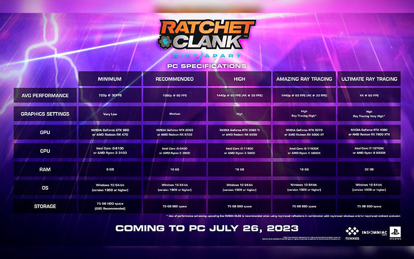 PC-versjonen av Ratchet & Clank: Rift Apart slippes 26. juli, og Sony har presentert spillets systemkrav.