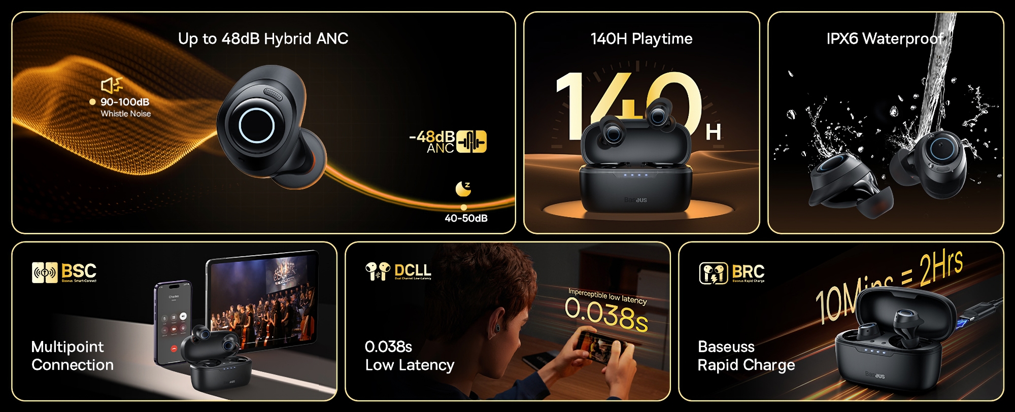 Nyheten har en vakuumkonstruksjon og kan skilte med et hybridsystem for aktiv støyreduksjon (ANC) og miljøstøyreduksjon (ENC). Hodetelefonene støtter Bluetooth 5.3-tilkobling med en lav latenstid på 0,038 sekunder. Baseus har også utstyrt det nye produktet med en titanbelagt dobbeltmembran i aerospace-klasse. Enheten er IPX6-beskyttet mot vann og svette. Når det gjelder autonomi, vil den vare i opptil 8 timer. Etuiet vil øke dette tallet til rekordhøye 140 timer.