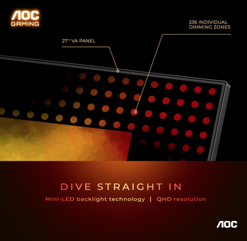 AOC Q27G3XMN debuterte utenfor Kina: 27-tommers 2K QD-Mini LED-skjerm med 180 Hz oppdateringsfrekvens og en pris på 310 dollar.