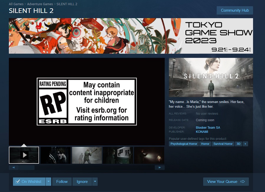 På siden til Silent Hill 2 remake i Steam dukket det opp et banner for Tokyo Game Show 2023, som arrangeres fra 21. til 24. september.