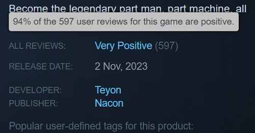 Steam-brukerne var svært fornøyde med RoboCop: Rogue City, noe som fremgår av 94 % positive anmeldelser.