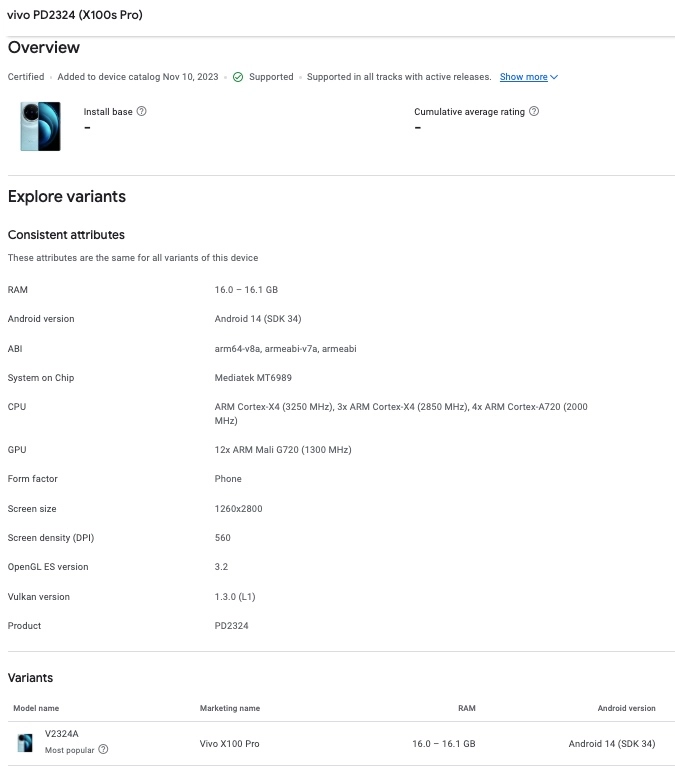 Det samme brikkesettet ble funnet i Google Play Console-databasen for Vivo X100s. Dette indikerer at begge telefonene kan drives av det samme brikkesettet, men det vil være andre forskjeller mellom de to enhetene.