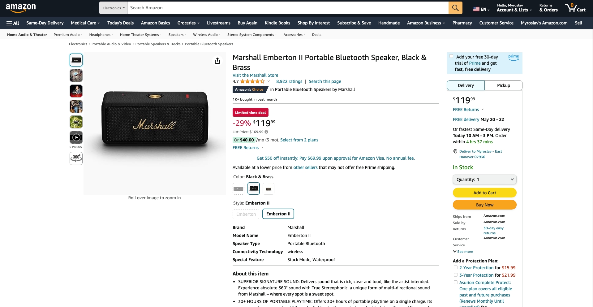 Marshall Emberton II med IP67-beskyttelse og 360-graders lyd på salg på Amazon med $ 50 rabatt