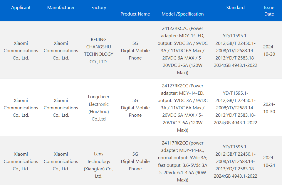 24127RK2CC kan også komme med en 120W lader og vil bli kjent som Redmi K80 Pro. Det vil bli drevet av Snapdragon 8 Elite-brikkesettet og vil sannsynligvis forbli eksklusivt for det kinesiske markedet.