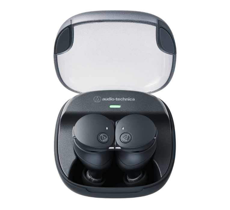 ATH-CKS50TW2 har Hybrid Active Noise Cancellation og 9 mm drivere for lyd av høy kvalitet. De har også støtte for flerpunktsparring, trådløs Qi-lading og IP55-beskyttelse mot støv og vann. Med berøringskontrollene på hodetelefonene kan du justere avspilling, volum, samtaler, stemmeassistent og støyreduksjon.