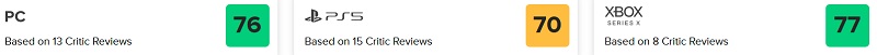 • Metacritic - 70 til 77 poeng avhengig av plattform.