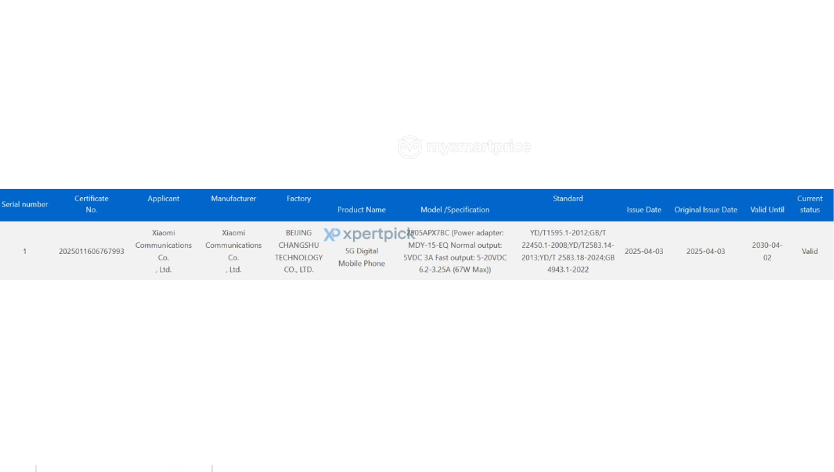 Xiaomi Mix Flip 2 ble oppdaget i 3C-databasen med modellnummer 2505APX7BC og 2505APX7BG. Den første modellen er den Kinesiske versjonen, og den andre er den globale. Sertifiseringen avslørte ikke mange detaljer om den nye sammenleggbare telefonen, men den bekreftet støtte for 67W hurtiglading via MDY-15-EQ strømadapteren.
