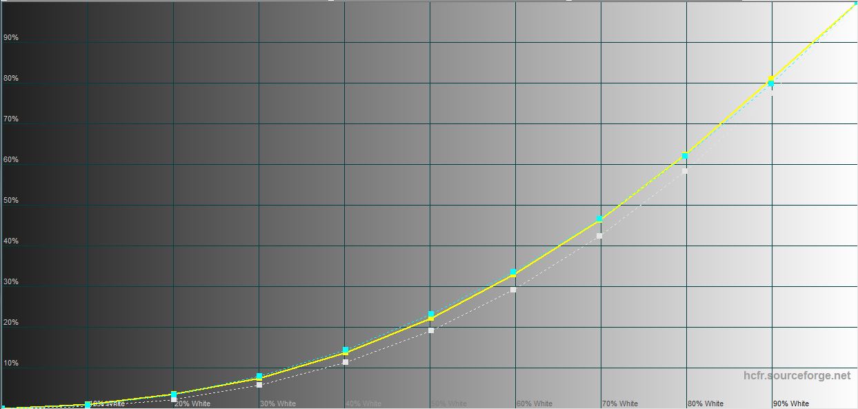 Det er nesten ikke noe å utsette på skjermen. Fargene er svært mettede, lysstyrken er til og med litt høyere enn det som er komfortabelt for innendørs bruk, og betraktningsvinklene er maksimale. Det eneste som kanskje ikke passer deg, er det blanke belegget, som blender litt. Maskinvaremålinger har vist at den maksimale lysstyrken er 391,056 cd/m², noe som er helt i tråd med de oppgitte indikatorene. Fargespekteret er litt bredere enn sRGB-området, og fargenøyaktigheten ligger nær referanseverdiene. Fargetemperaturen ligger nær 6000K med en referanseverdi på 6500K: