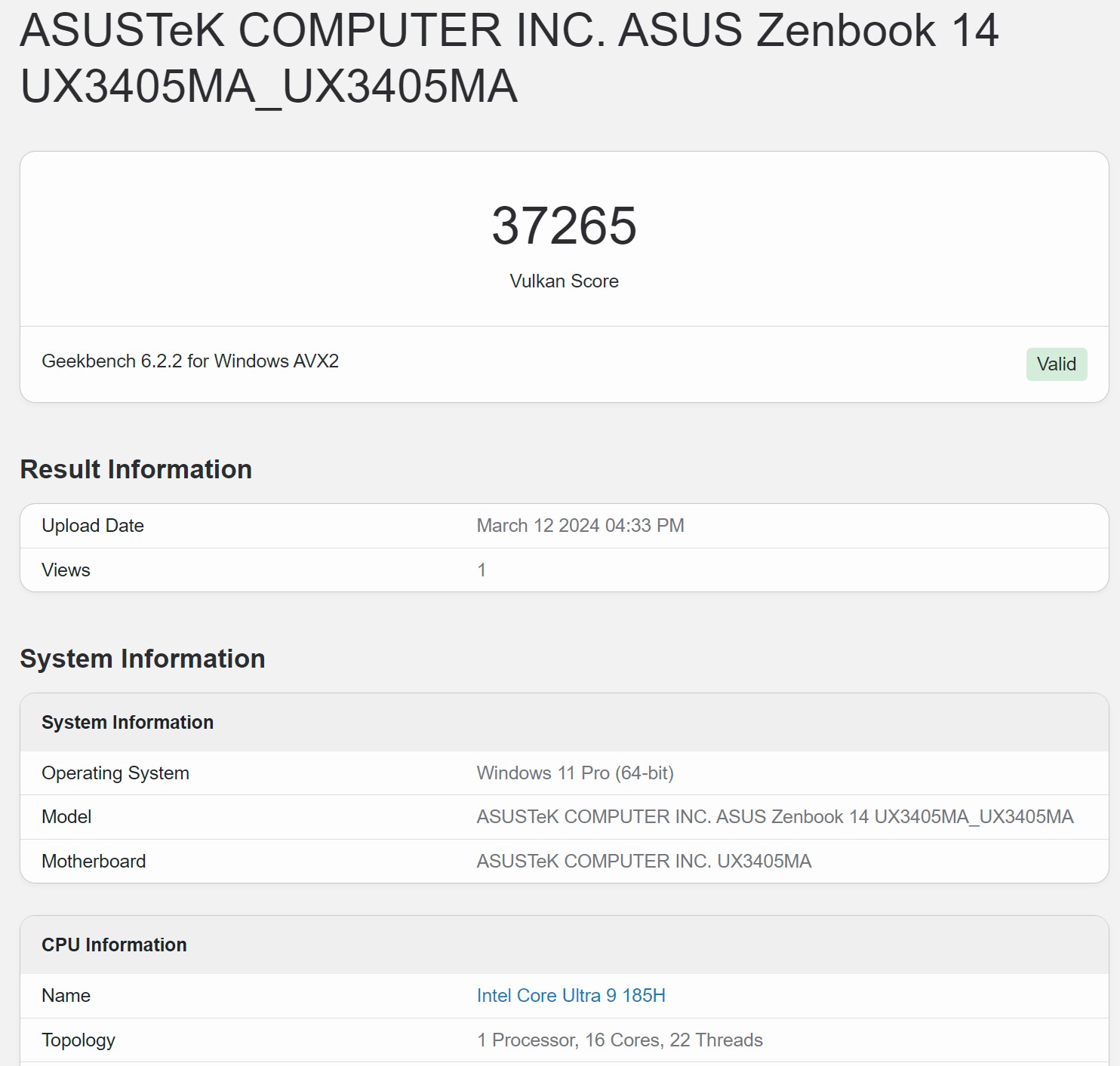 Syntetiske ytelsestester av ASUS Zenbook 14 OLED (UX3405)